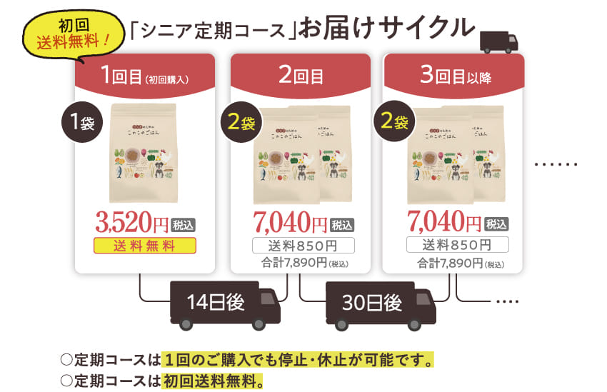 初めて「シニアのためのこのこのごはん」をご注文の方